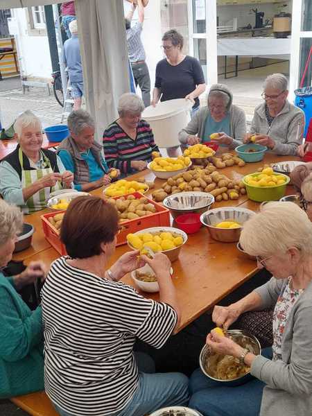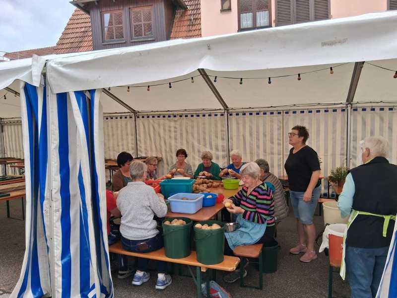 Am Donnerstag, dem 17. Juli.2025, bewirteten die Mitglieder des hausFRAUENvereins mit Kartoffelsalat, Maultaschen und verschiedenen Kuchen aus dem Backhäusle. Alles wurde von unseren fleißigen Frauen in schweißtreibender Arbeit selber hergestellt. Hier sind einige Impressionen der Vorbereitungen und vom Fest zu sehen.