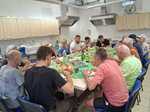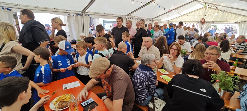 war der Aufbau des großen Festzeltes durch kräftige Unterstützung einiger Männer der verschiedenen Vereine. Danach gab´s ein deftiges Vesper für die fleißigen Helfer: