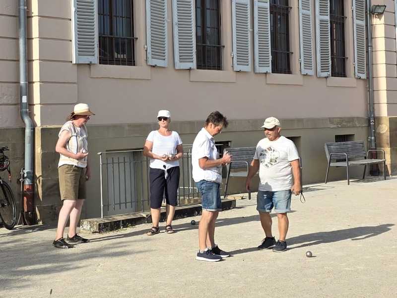 Am 13.08.2025 trafen wir uns zum Boule-Spielen am Bönnigheimer Schlosshof. Die ersten Versuche wurden unter fachmännischer Anleitung unternommen. Es war eine große Herausforderung, da uns die hohen Temperaturen zu schaffen machten. Trotzdem hat es viel Spaß gemacht. In geselliger Runde fand der Abend den Abschluss. Nächstes Jahr wieder, keine Frage :-)