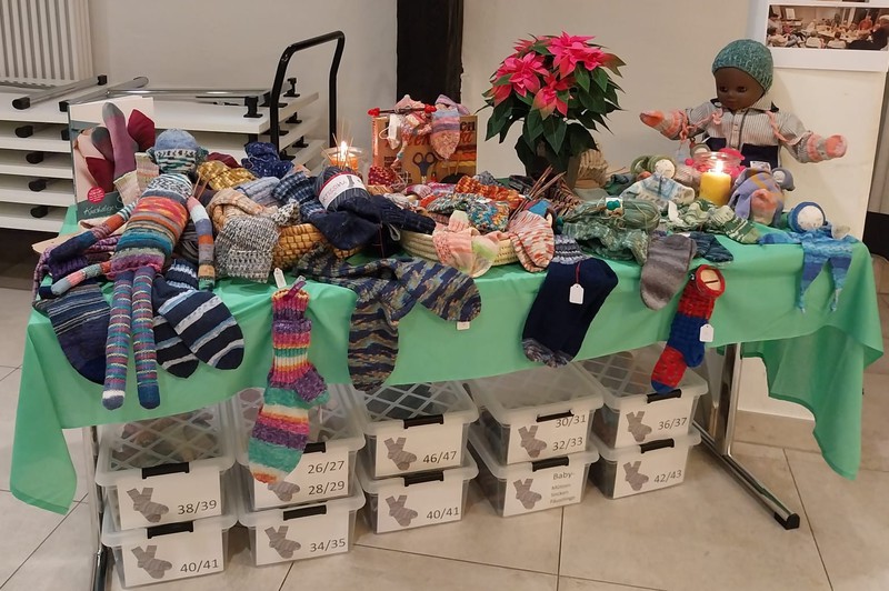 Die Vorbereitungen für den Weihnachtsbasar laufen auf vollen Touren. DIe Socken wurden nach Größe sortiert, ausgepreist und in Kisten verstaut. Bilder gibt´s unten in der Galerie! Es sind sooooo